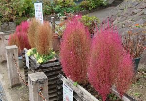 写真はプランタンのコキアです。赤くなっています。同じに撮りました画像の一部をトリミングして今月の上の額に使いました。