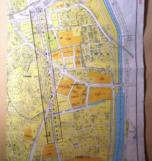 写真は前に各戸に配布のあった枚方市の住宅地図です。その地図を折って、枚方市駅の位置を0cmにして物差しを当ててみました。